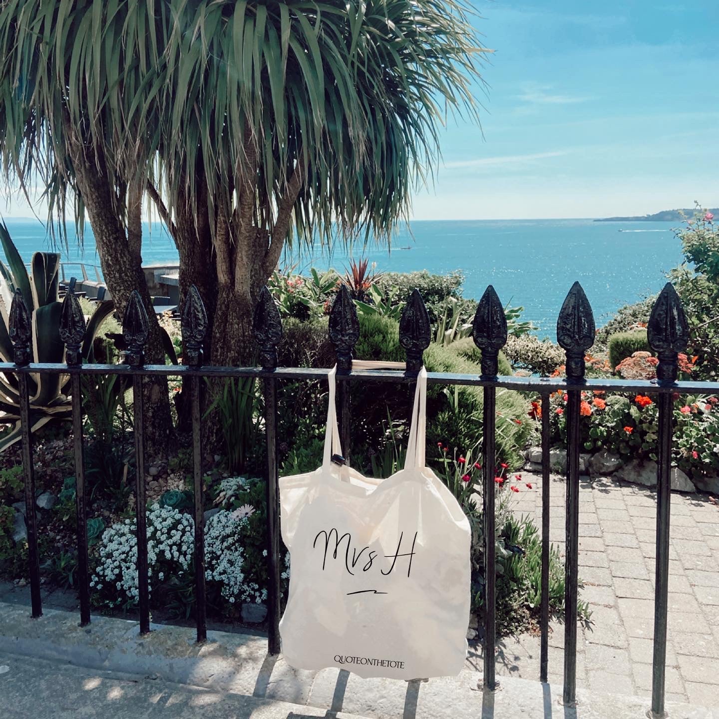 Gorgeous, minimalist, personalised tote bag. It’s huge! But also folds up super small. The handles fit over my pram handles too really nicely. For a family of 5 I fit all of our towels and extras in!! 🏝